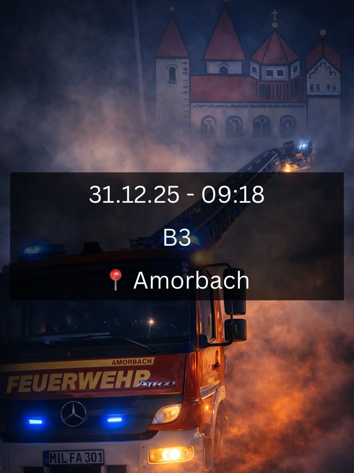 🚨 Einsatzinfo 🚨 . 📟 – B3 🗓 – 31.12.2025, 09:18 Uhr . Am Morgen der Silvesternacht wurden wir zu unserem letzten Einsatz des vergangenen Jahres alarmiert. Hier kam es zu einer verrauchten Wohnung, nachdem Rauch durch den Kamin zurück in den Wohnbereich gezogen war. Es gab kein Feuer, keine Verletzten. Wir belüfteten die Wohnung, prüften den Kamin und konnten unsere Maßnahmen anschließend wieder beenden. . Im Einsatz 🚒 ffamorbach: HLF, MZF, DLK Bay. Rotes Kreuz: RTW PI Miltenberg . #feuerwehr #freiwilligefeuerwehr #ffw #brandeinsatz #rauch